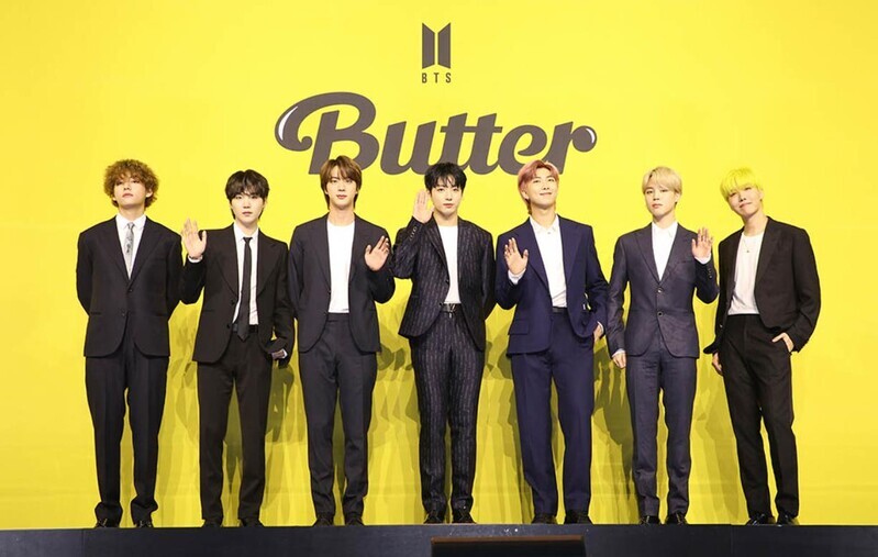 | ▲ Seven-piece act BTS poses during a news conference for its new digital single "Butter" in eastern Seoul on May 21, 2021. (Yonhap) |
