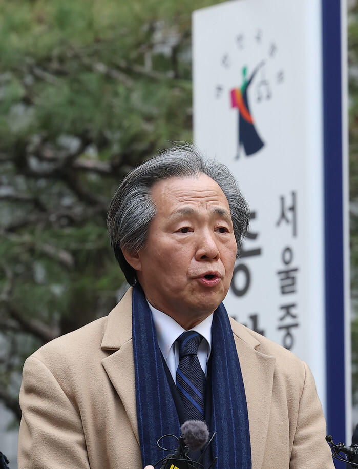 Jung Ki-suck, head of the National Health Insurance Service, speaks to reporters at the Seoul High Court in the capital on Jan. 15, 2026, after the appellate court ruled against the state health insurer in its smoking-related damages suit against three major tobacco firms, upholding a lower court ruling in favor of the companies. (Yonhap)