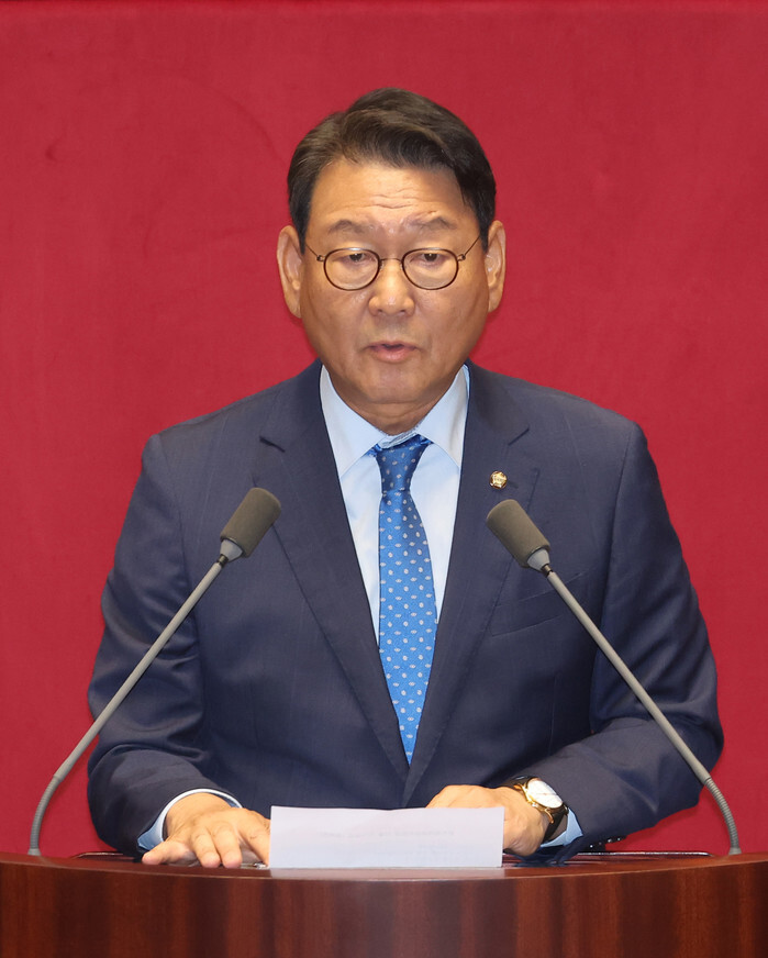 Kim Kyo-heung, a lawmaker of the ruling Democratic Party, speaks after being elected as the chief of the culture, sports and tourism committee during a plenary session at the National Assembly in Seoul on June 27, 2025. (Yonhap)