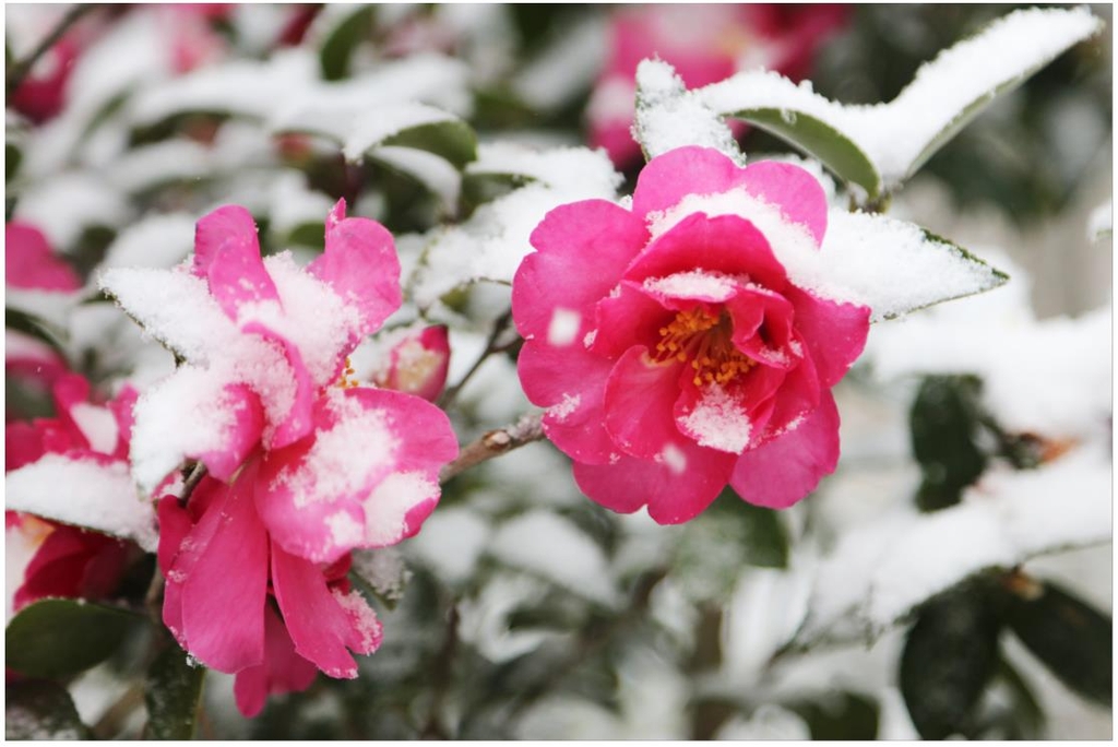 애기동백꽃은 12월부터 이듬해 2월까지 피는데 눈이 쌓이면 한 폭의 동양화가 된다.