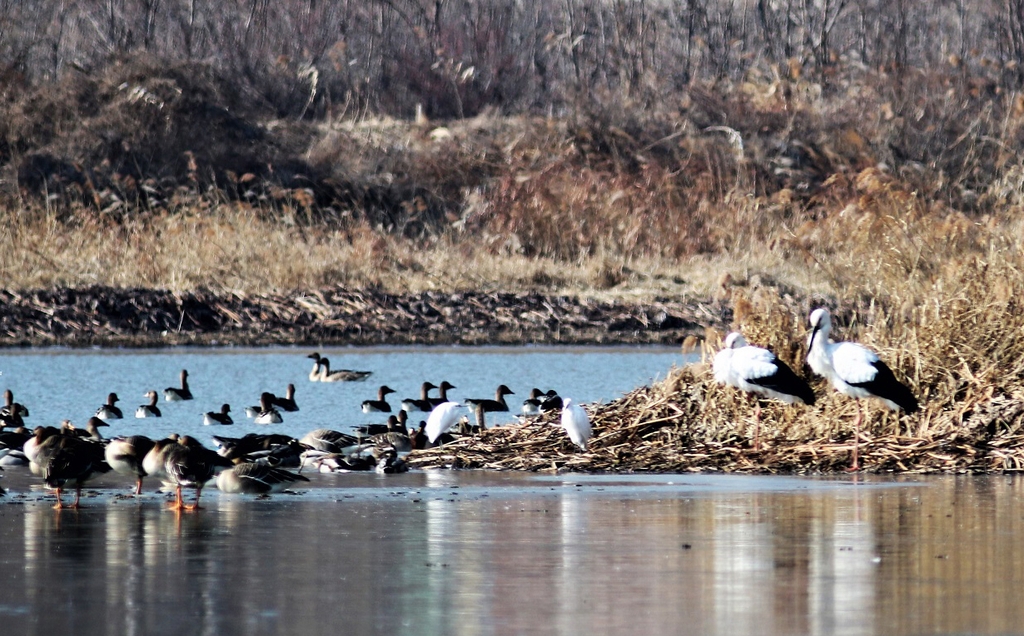 창원 의창구 주남저수지는 재두루미, 황새, 큰고니, 큰기러기 등 겨울 철새도래지로 유명하다.
