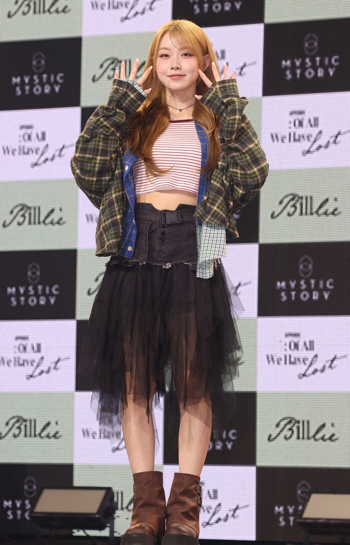 Suhyeon, a member of South Korean girl group Billlie, poses for a photo during a showcase in Seoul on Oct. 16, 2024, to promote the release of the group's fifth mini album "Appendix: Of All We Have Lost." (Yonhap)