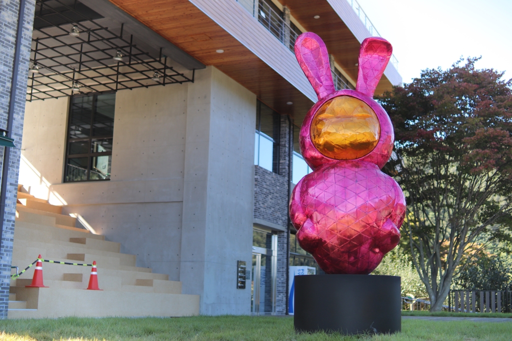 또 도서관 앞마당에 홍천군 조각공모전 선정 작품인 분홍색 토끼 모양 조각상 'Everyone'(에브리원)이 자리 잡았다.