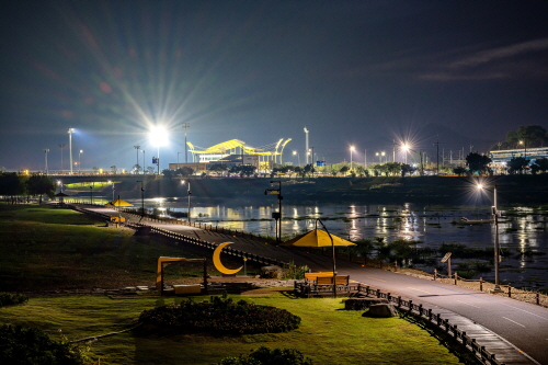 야경의 하이라이트는 완공을 앞둔 공설운동장 '옐로우시티 스타디움'이다.