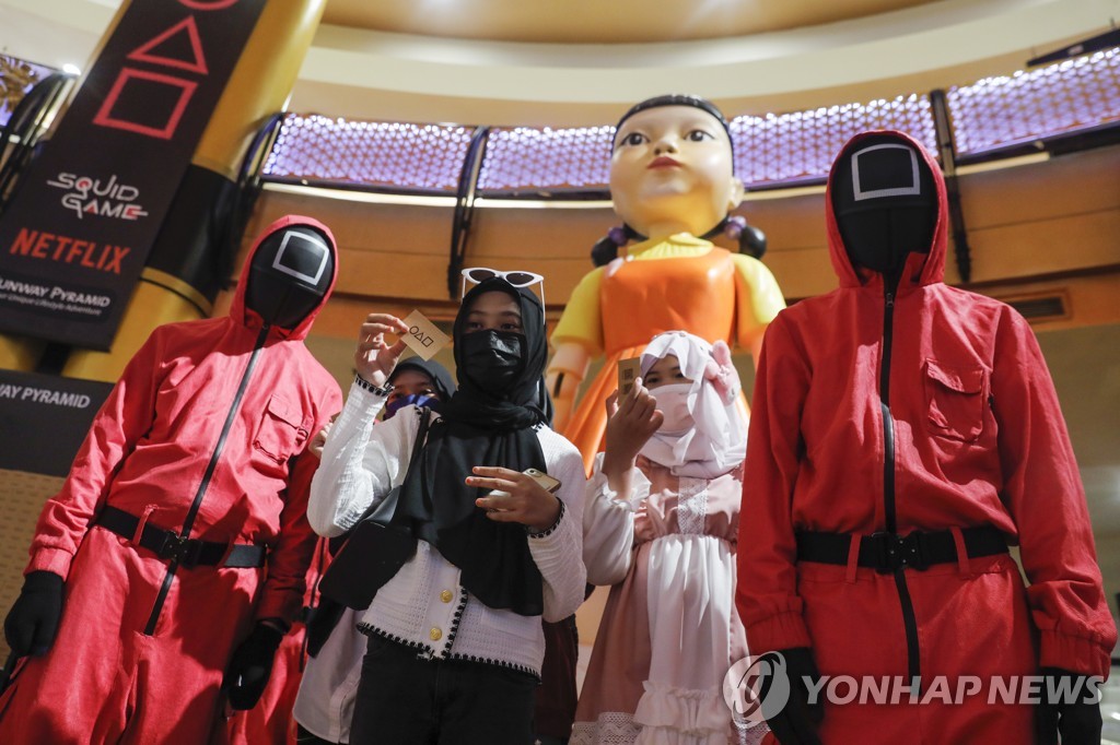 | ▲ 2021년 쿠알라룸푸르 쇼핑몰에서 '오징어게임' 의상을 입은 사람들의 모습 [EPA=연합뉴스 자료사진] |