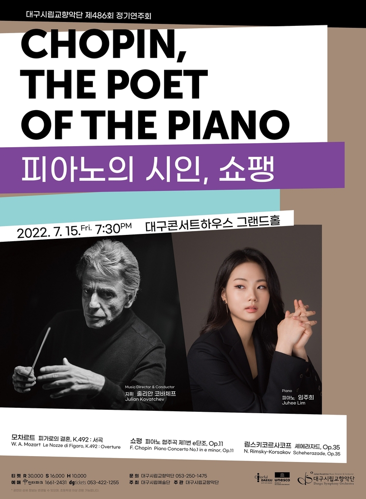 대구시향 음악감독 겸 상임지휘자 줄리안 코바체프가 지휘하고 신예 피아니스트 임주희가 협연한다.