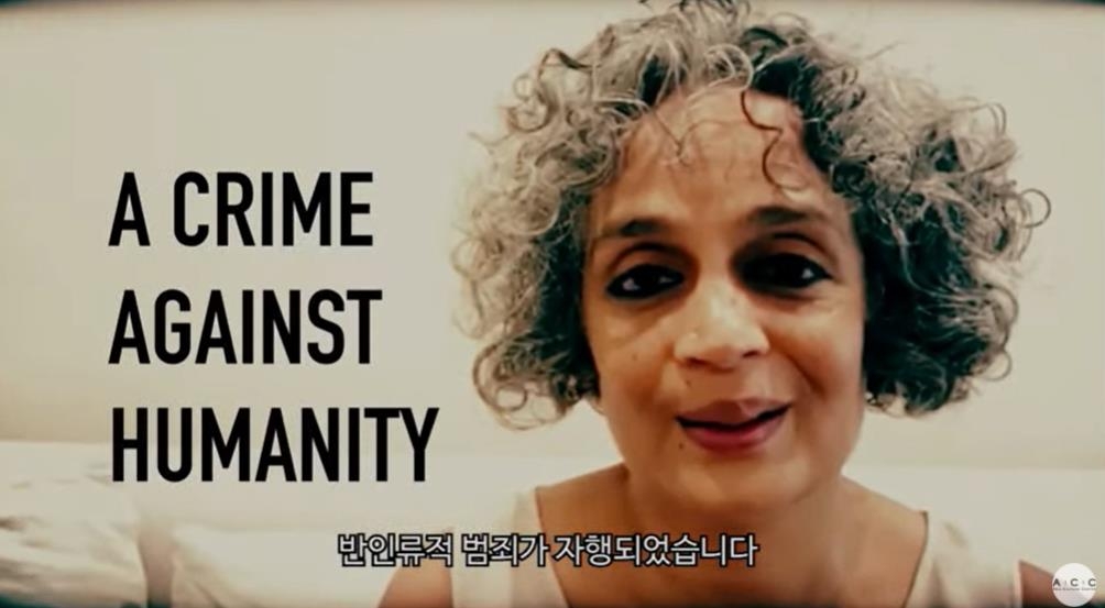 1997년 소설 '작은 것들의 신'으로 부커상을 받은 인도 소설가 아룬다티 로이도 영상을 통해 '우리는 심판해야 한다'란 주제로 발제했다.