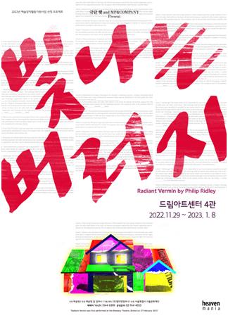 (서울=연합뉴스) 임지우 기자 = ▲ 영국 극작가 리들리 연극 '빛나는 버러지' 국내 초연 = 영국 극작가 필립 리들리의 연극 '빛나는 버러지'가 오는 29일부터 내년 1월 8일까지 서울 대학로 드림아트센터 4관에서 국내 초연된다.