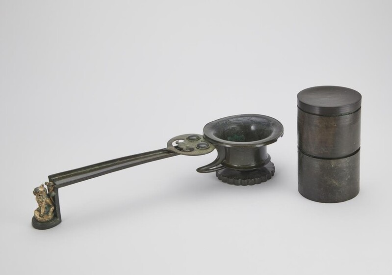 | ▲ 보물 '군위 인각사 출토 공양구 일괄' 사진은 출토된 유물 중 손잡이 향로와 향합 [국립부여박물관 제공. 재판매 및 DB 금지] |