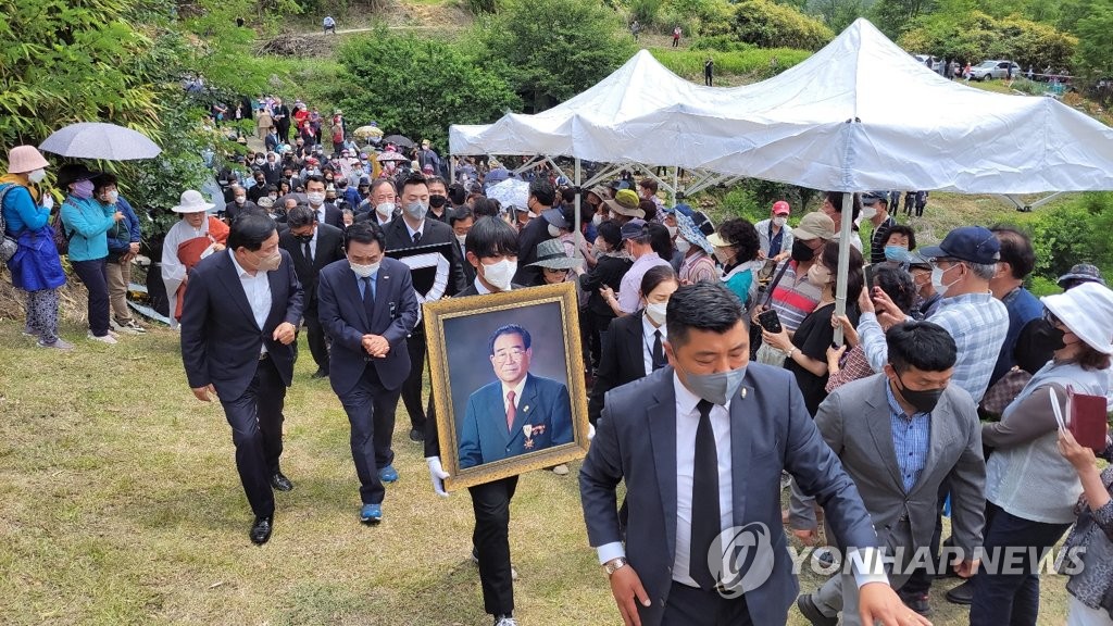 (대구=연합뉴스) 김용민 기자 = 70년 세월을 국민과 함께 울고 웃었던 방송인 고(故) 송해 선생이 10일 대구시 달성군 처가 선산에 안장돼 영면에 들어갔다.