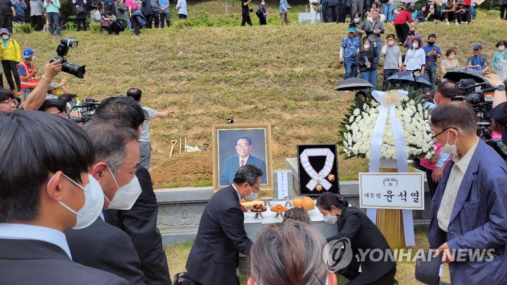 안장식은 지난 2018년 먼저 세상을 떠난 부인 석옥이 여사의 묘 옆에 마련된 가묘에 유해를 묻는 하관식을 시작으로 봉토 작업, 제례 등의 순으로 치러졌다.