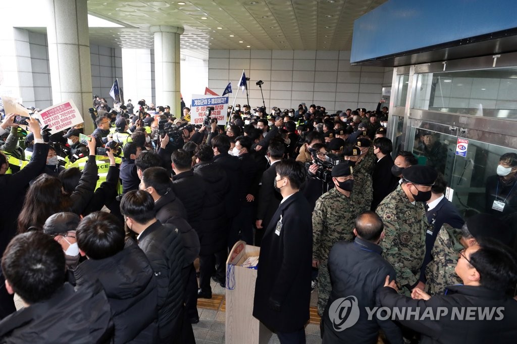 | ▲ 5·18센터 들어서는 특전사동지회 (광주=연합뉴스) 정회성 기자 = 19일 오전 광주 서구 쌍촌동 5·18기념문화센터에서 열린 '용서와 화해를 위한 대국민 공동선언' 행사에 특전사동지회 회원이 참석하고 있다. 5·18단체 일부가 추진한 이날 행사를 앞두고 진상규명 협조와 진솔한 사과를 요구하는 시민단체가 반대 행동에 나섰다. 2023.2.19 hs@yna.co.kr |
