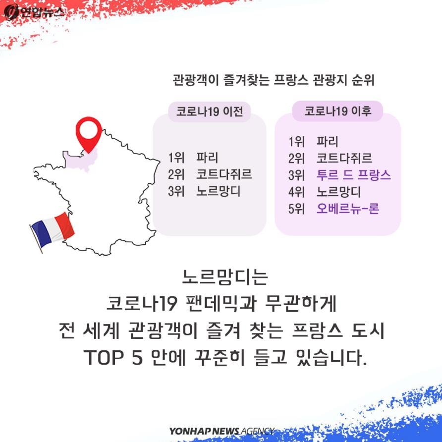 - 코로나19 이전: 1위 파리, 2위 코트다쥐르, 3위 노르망디
