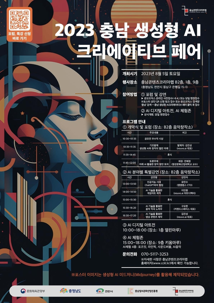 최근 산업과 창작활동에서 화두가 되는 생성형 AI에 대한 이해를 높이고 관련 기술을 쉽게 경험할 수 있도록 마련한 이번 페어는 '생성형 AI와 창작의 열린 미래' 기조 발제를 시작으로 전시, 특강, 체험 등 다양한 프로그램으로 진행된다.