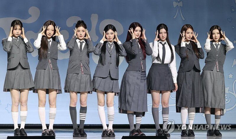 ▲ 하츠투하츠 첫 미니앨범 발표 (서울=연합뉴스) 이재희 기자 = 걸그룹 하츠투하츠가 20일 서울 용산구 블루스퀘어에서 열린 첫 번째 미니앨범 '포커스'(FOCUS) 언론 공개회에서 포즈를 취하고 있다. 2025.10.20 scape@yna.co.kr