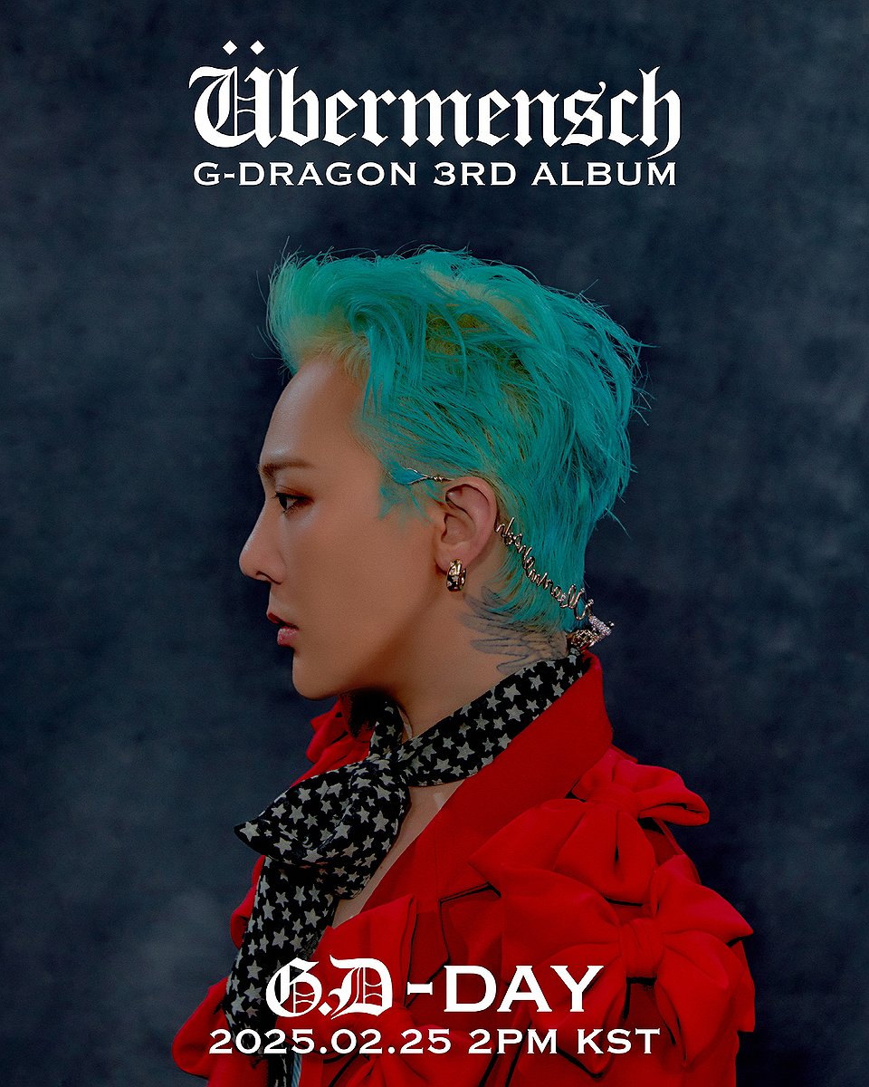 ▲ 지드래곤, 정규 3집 '위버멘쉬'로 컴백 (서울=연합뉴스) 가수 지드래곤이 11년 만에 정규 3집 '위버멘쉬'를 발표한다고 소속사 갤럭시코퍼레이션이 25일 밝혔다. 사진은 지드래곤 '위버멘쉬' 발매 포스터. 2025.2.25 [갤럭시코퍼레이션 제공. 재판매 및 DB 금지] photo@yna.co.kr |