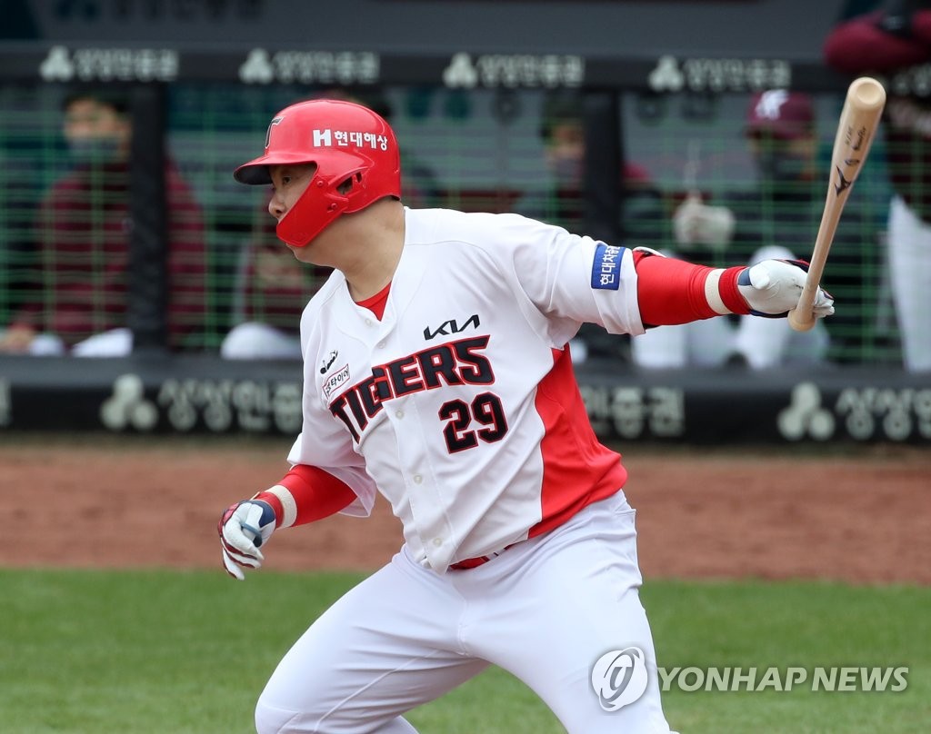 | ▲ In this file photo from March 25, 2022, Na Ji-wan of the Kia Tigers is in action against the Kiwoom Heroes during the bottom of the fifth inning of a Korea Baseball Organization preseason game at Gwangju-Kia Champions Field in Gwangju, 270 kilometers south of Seoul. (Yonhap) |
