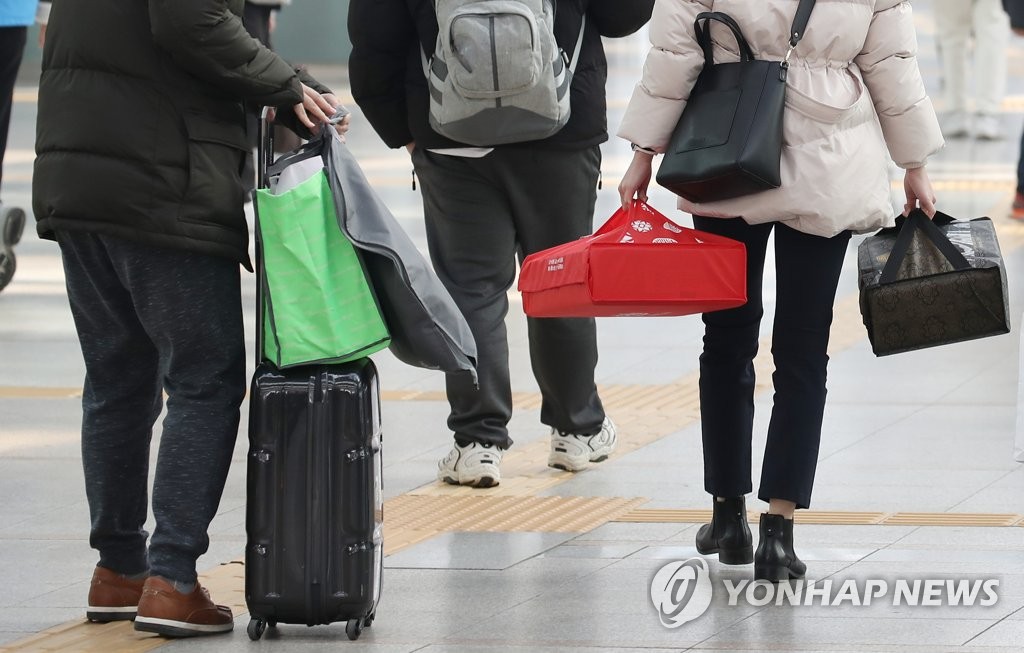 | ▲ 두 손 가득 다시 일상으로 (서울=연합뉴스) 김도훈 기자 = 설 연휴 사흘째인 13일 오전 서울역에서 시민들이 두 손 가득 짐을 들고 역사를 나서고 있다. 2021.2.13 superdoo82@yna.co.kr |