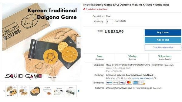 ▲ '오징어 게임' 속 달고나 만들기 세트 [이베이 캡처. 재판매 및 DB 금지]