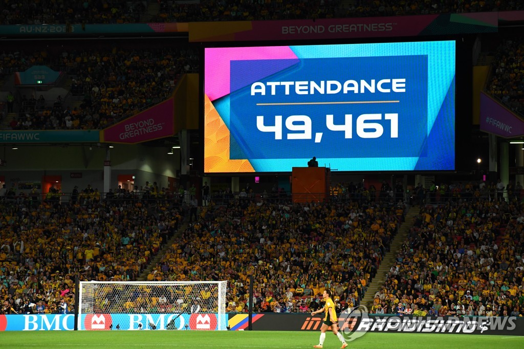 | ▲ 호주-프랑스 8강전 관중 수 뜬 전광판 [EPA=연합뉴스] |
