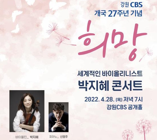 | ▲ 강원CBS '박지혜 희망 콘서트' 포스터 [강원CBS 제공.재판매 및 DB 금지] |