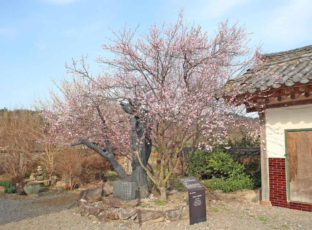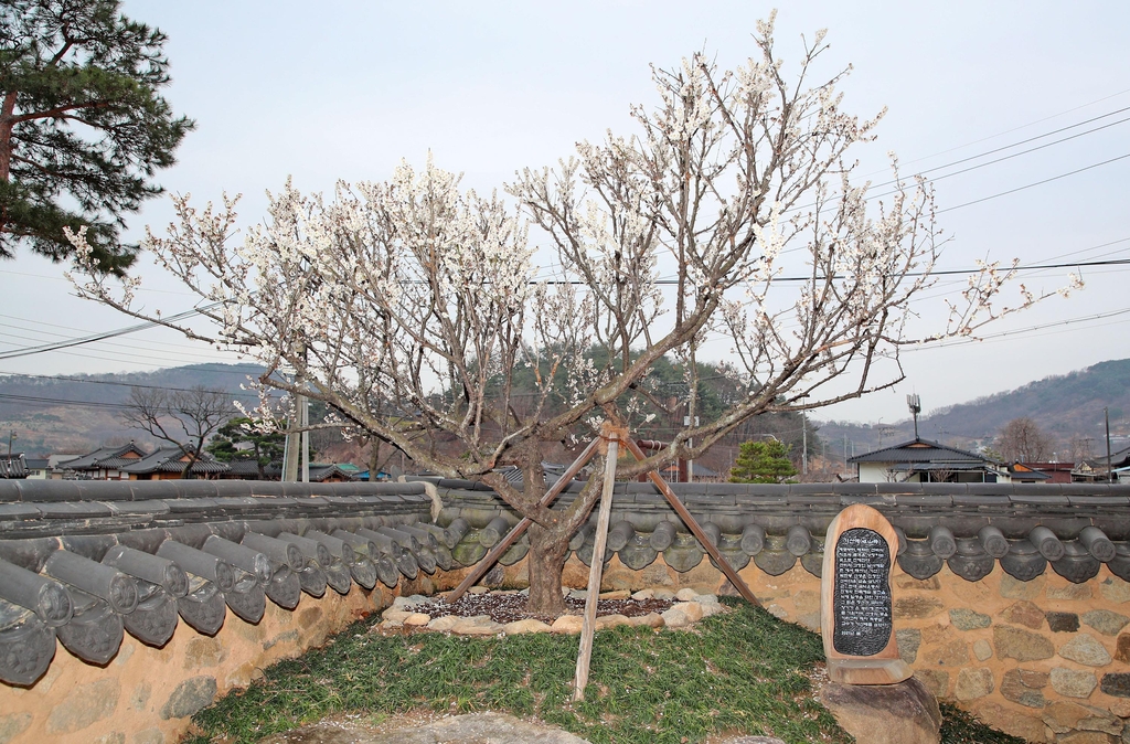 (산청=연합뉴스) 김동민 기자 = 경남 산청군 단성면에 위치한 '남사예담촌'에 수백 년 된 매화나무가 개화하면서 하얀 봄 내음을 전하고 있다.
