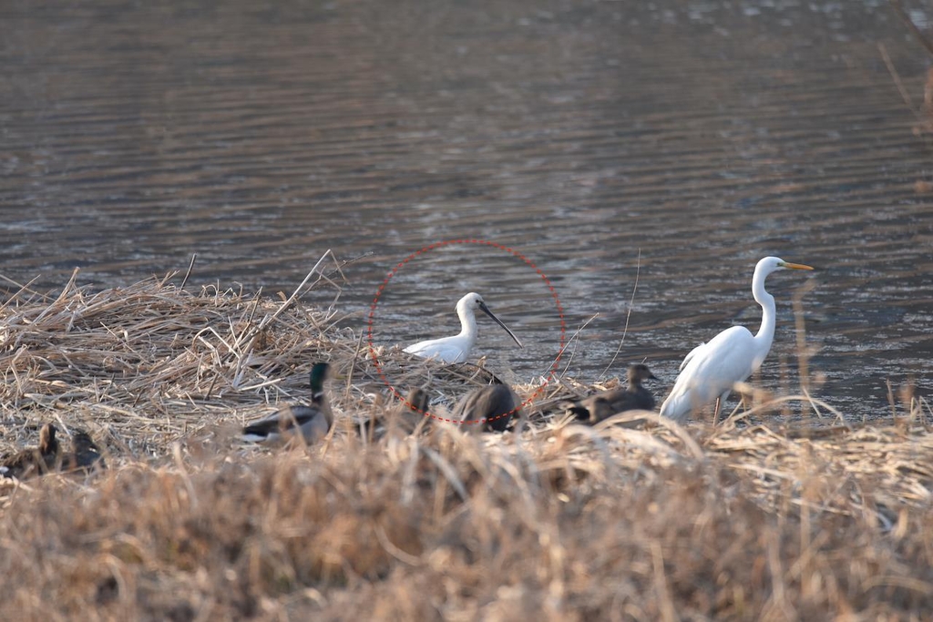 | ▲ 대전 갑천서 발견된 노랑부리저어새(빨간색 원안) [대전환경운동연합 제공. 재판매 및 DB 금지] |