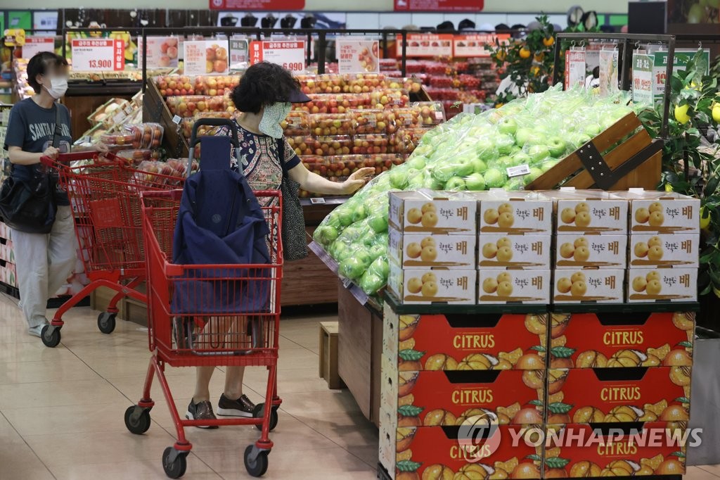 | ▲ People shop for groceries at a discount store in Seoul on Aug. 11, 2022. (Yonhap) |