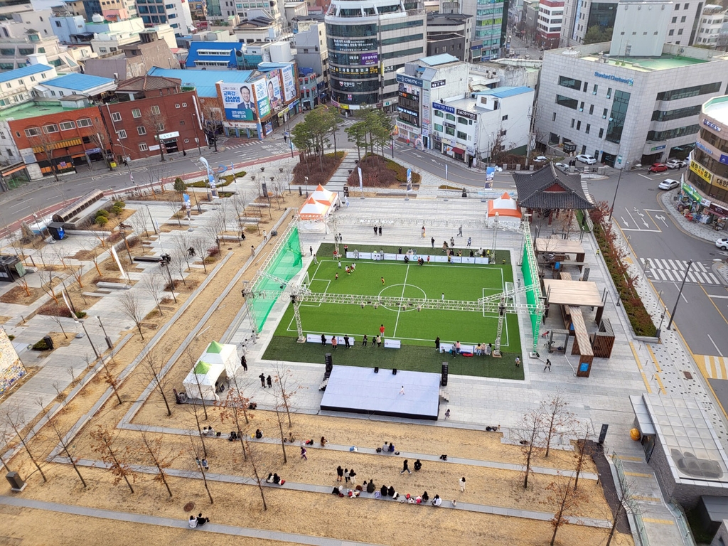 | ▲ 축구장으로 변신한 춘천시청 광장 [촬영 이상학] |