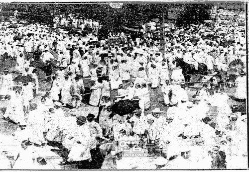| ▲ 6.10만세운동 당시 사람들과 기마병 [연합뉴스 자료사진] 1926년 6.10만세운동 당시 사람들과 기마병. << 서울시 제공 >> |