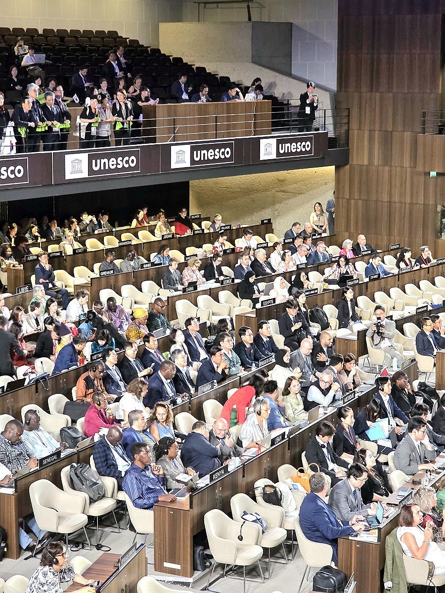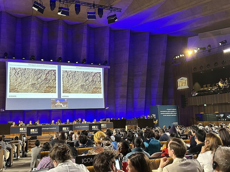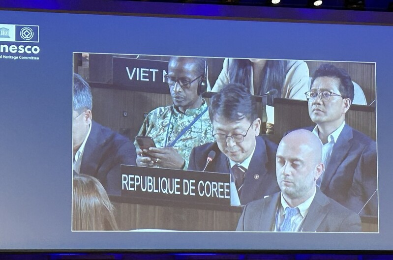 | ▲ 제47차 유네스코 세계유산위원회 (파리=연합뉴스) 12일(현지시간) 프랑스 파리 유네스코 본부에서 유네스코 세계유산위원회 제47차 회의가 열리고 있다. 국보 '울주 대곡리 반구대 암각화'와 '울주 천전리 명문과 암각화'를 묶은 반구천의 암각화는 한국의 17번째 세계유산으로 등재됐다. 2025.7.12 [박경립 교수 제공. 재판매 및 DB 금지] yes@yna.co.kr |