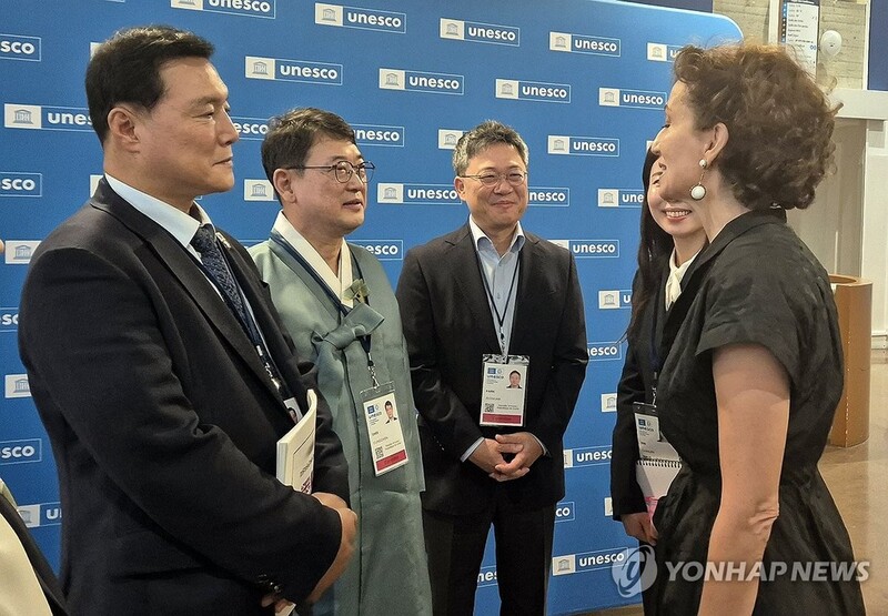 | ▲ 최응천 국가유산청장 (파리=연합뉴스) 김예나 기자 = 15일(현지시간) 프랑스 파리 유네스코 본부에서 열린 제47차 세계유산위원회에서 최응천 국가유산청장(가운데)이 내년도 위원회 개최 확정 발표 이후 소감을 말하고 있다. 2025.7.15 yes@yna.co.kr |