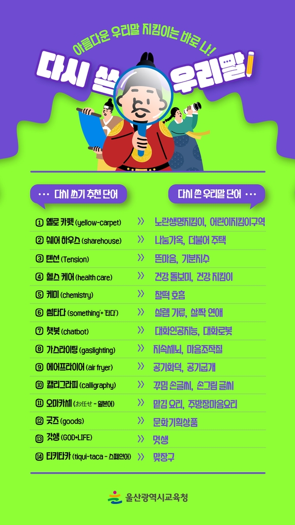 울산 중고생이 제안한 '우리말 다시쓰기' 수상작…교육청, 올해 3년째 사업