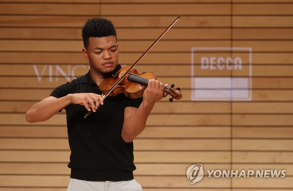 | ▲ 어머니의 나라에서 첫 공연 앞둔 랜들 구스비 (서울=연합뉴스) 류효림 기자 = 바이올리니스트 랜들 구스비가 19일 서울 용산구 리움미술관에서 열린 앨범 발매 및 첫 내한 공연 기자간담회에서 바흐의 '바이올린 소나타 1번'을 연주하고 있다. 2023.6.19 ryousanta@yna.co.kr |