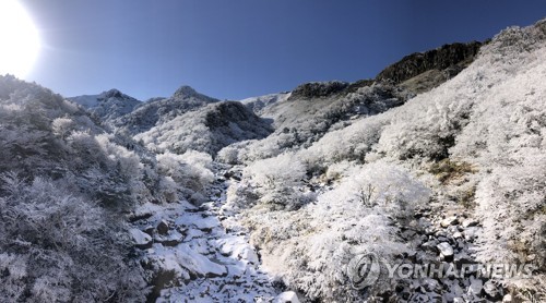 | ▲ 눈꽃 핀 한라산 (제주=연합뉴스) 박지호 기자 = 30일 오전 제주 한라산 고지대에 하얀 눈꽃이 피어 있다. 2020.11.30 jihopark@yna.co.kr |