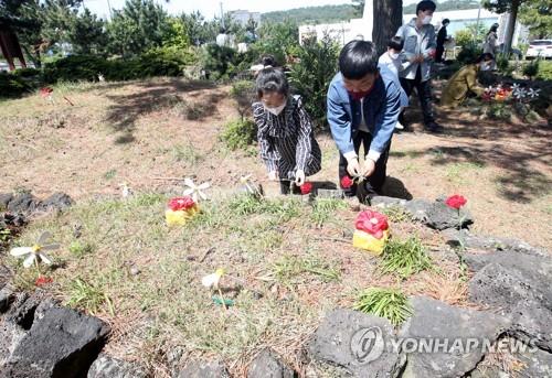 | ▲ 제 지내는 4·3 행방불명 희생자 유족 [연합뉴스 자료 사진] |