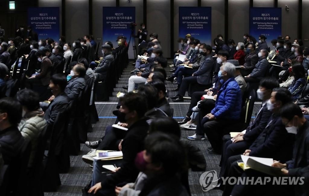 | ▲ Shareholders attend Samsung Electronics Co.'s annual meeting at Suwon Convention Center, south of Seoul, on March 16, 2022. (Yonhap) |