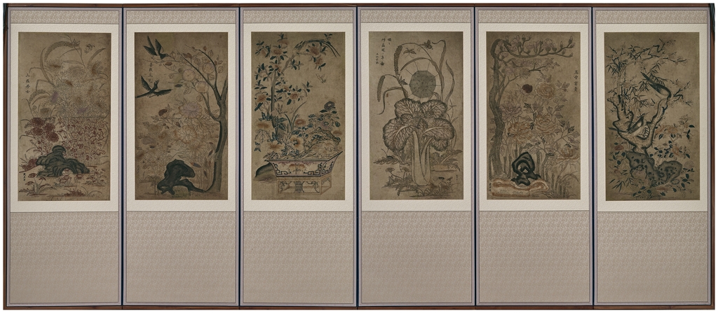 이 병풍은 새와 꽃을 함께 그린 화조도(花鳥圖), 풀과 벌레를 그린 초충도(草蟲圖) 등 그림 6점을 담은 것으로, 이 가운데 2점은 그간 알려지지 않은 작품이라고 박물관은 설명했다.