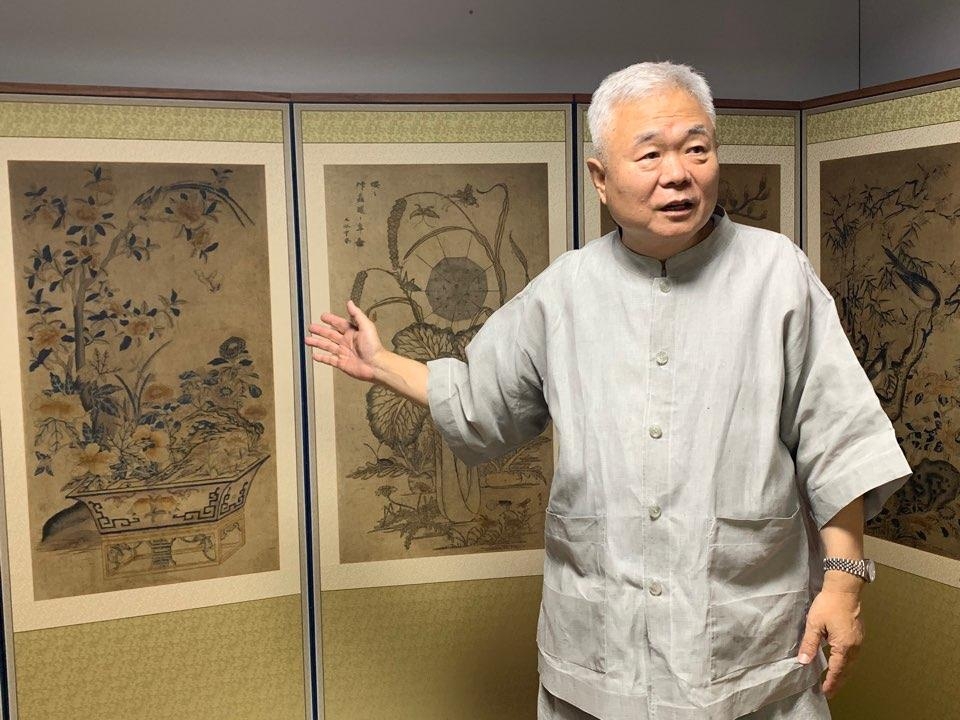 | ▲ 화조도 6곡 병풍 설명하는 한선학 관장 (서울=연합뉴스) 김예나 기자 = 20일 서울 종로구 인사동의 한 음식점에서 한선학 원주 명주사 고판화박물관장이 화조도 6곡 병풍에 관해 설명하고 있다. 2022.9.20 yes@yna.co.kr |