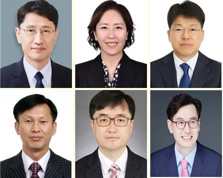 This combined photo, released by the presidential office on Dec. 27, 2023, shows (clockwise, from top L) Kim Yoon-sang, Shin Young-sook, Jin Hyun-hwan, Son Young-taek, Im Ki-keun and Song Myung-dal, whom President Yoon Suk Yeol named the same day as the second vice finance minister, the vice gender equality minister, the first vice land minister, the chief secretary of the Office for Government Policy Coordination, the head of the Public Procurement Service and the vice oceans minister, respectively. (PHOTO NOT FOR SALE) (Yonhap)