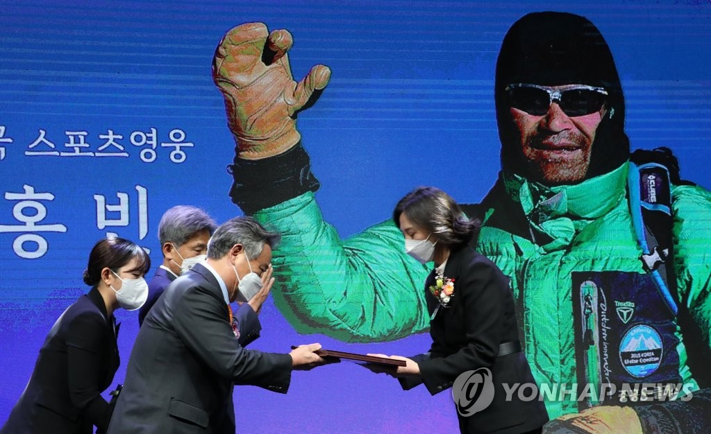 SEOUL, Dec. 22 (Yonhap) -- The late South Korean mountaineer Kim Hong-bin was inducted into the country's Sports Hall of Fame on Wednesday, five months after he went missing following a record-setting climb of an eight-thousander in the Himalayas.