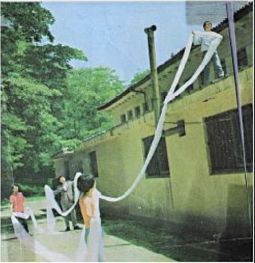 | ▲ 김구림 작가가 1970년 '제1회 한국미술대상전'에서 선보인 미술관을 광목으로 묶는 '현상에서 흔적으로' 작업 퍼포먼스 사진(디지털 프린트). [국립현대미술관 제공. 재판매 및 DB 금지] |