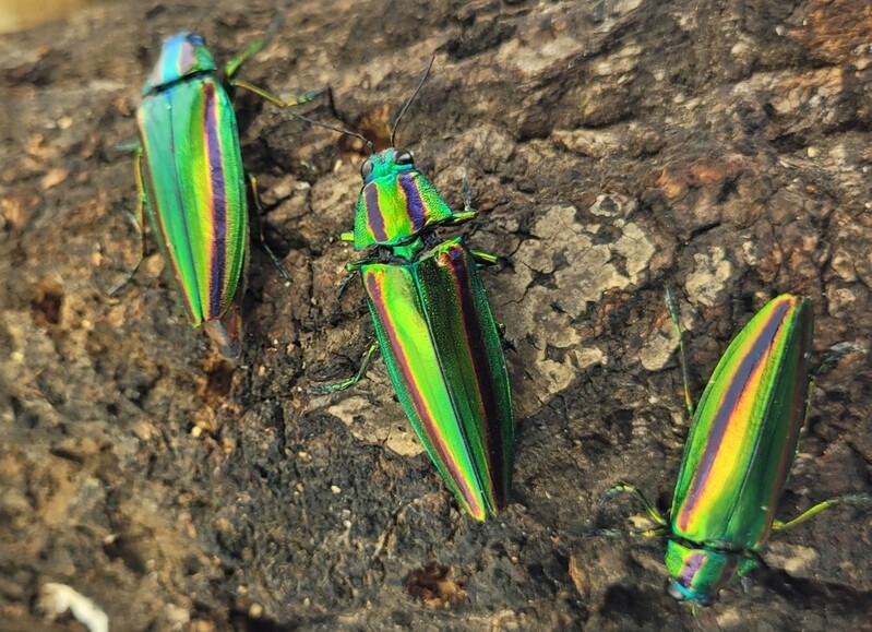 | ▲ 비단벌레 (밀양=연합뉴스) 이대암 천연기념물곤충연구센터장이 공개한 비단벌레. 기사에 나오는 비단벌레 집단 서식지는 사진처럼 성장한 상태가 아닌 유충이다. 2023.10.11 [이대암 천연기념물곤충연구센터장 제공. 재판매 및 DB 금지] |