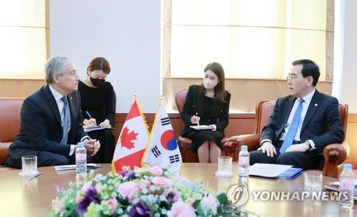 The consensus was made during a meeting between South Korea's Industry Minister Lee Chang-yang and Francois-Philippe Champagne, Canada's minister for innovation and economic development, held in Seoul, according to the Ministry of Trade, Industry and Energy.