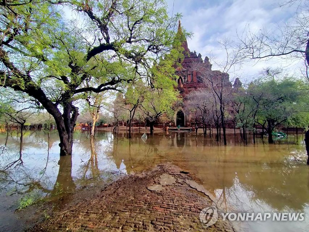 16일 현지 매체 이라와디에 따르면 14~15일 이틀간 내린 폭우로 미얀마 중북부 만달레이 지역에 있는 바간의 유적지 일부가 침수됐다.