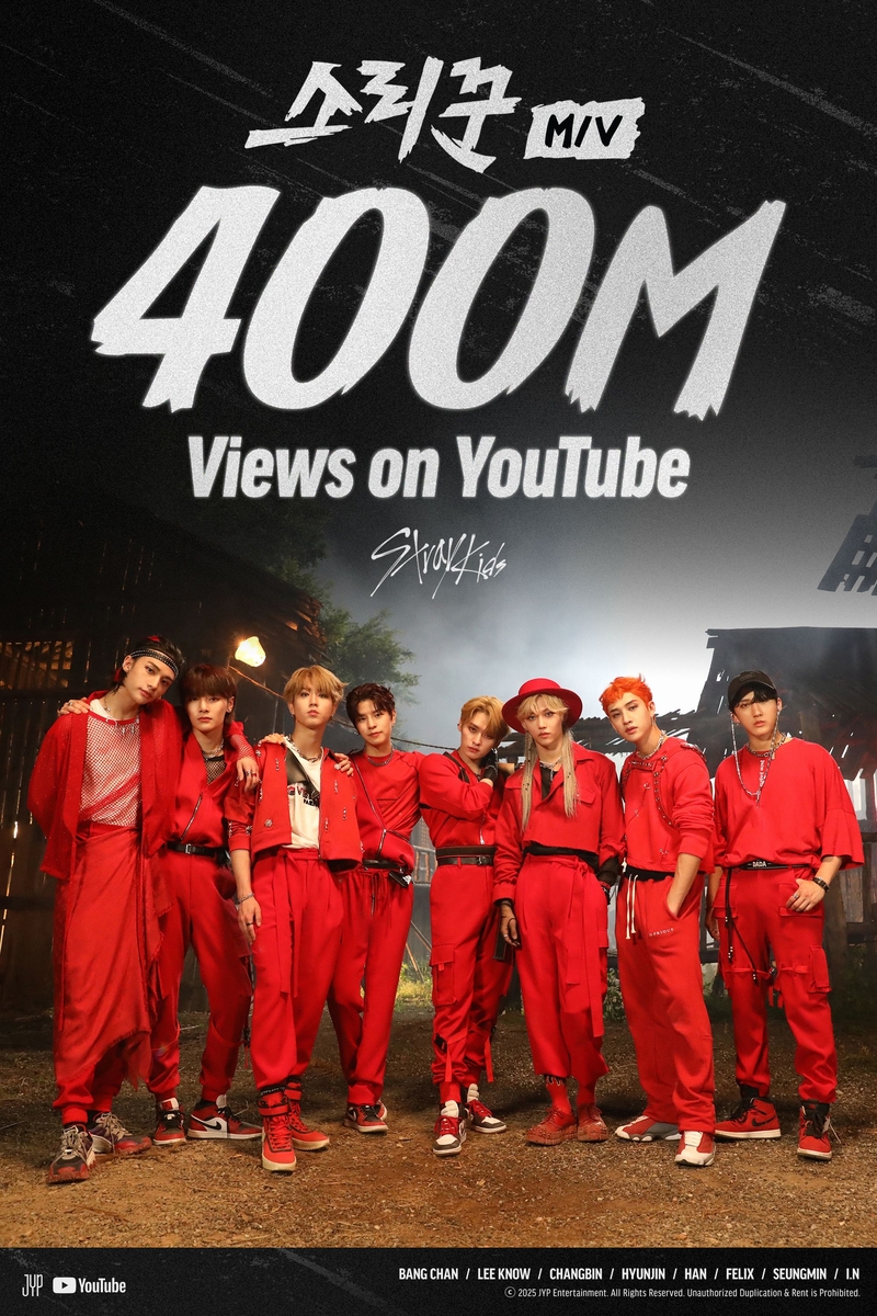 | ▲ 스트레이 키즈 '소리꾼' 뮤비 4억뷰 [JYP엔터테인먼트 제공. 재판매 및 DB 금지] |
