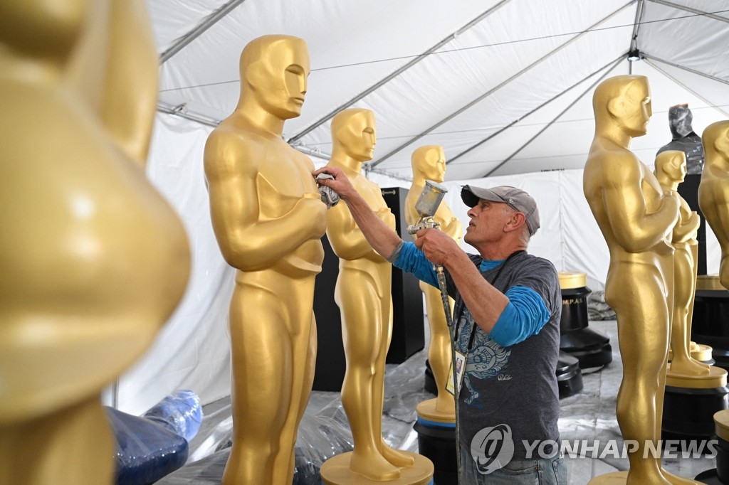 | ▲ 아카데미 시상식 앞두고 색깔 입혀지는 조각상들 (할리우드 AFP=연합뉴스) 제95회 아카데미상(오스카상) 시상식을 사흘 앞둔 9일(현지시간) 행사장을 꾸밀 조각상들에 색을 입히는 작업이 진행되고 있다. 미국영화예술과학아카데미(AMPAS)가 주최하는 할리우드 최대 축제인 아카데미 시상식은 오는 12일 로스앤젤레스(LA) 돌비 극장에서 열린다. 2023.03.10 yerin4712@yna.co.kr |