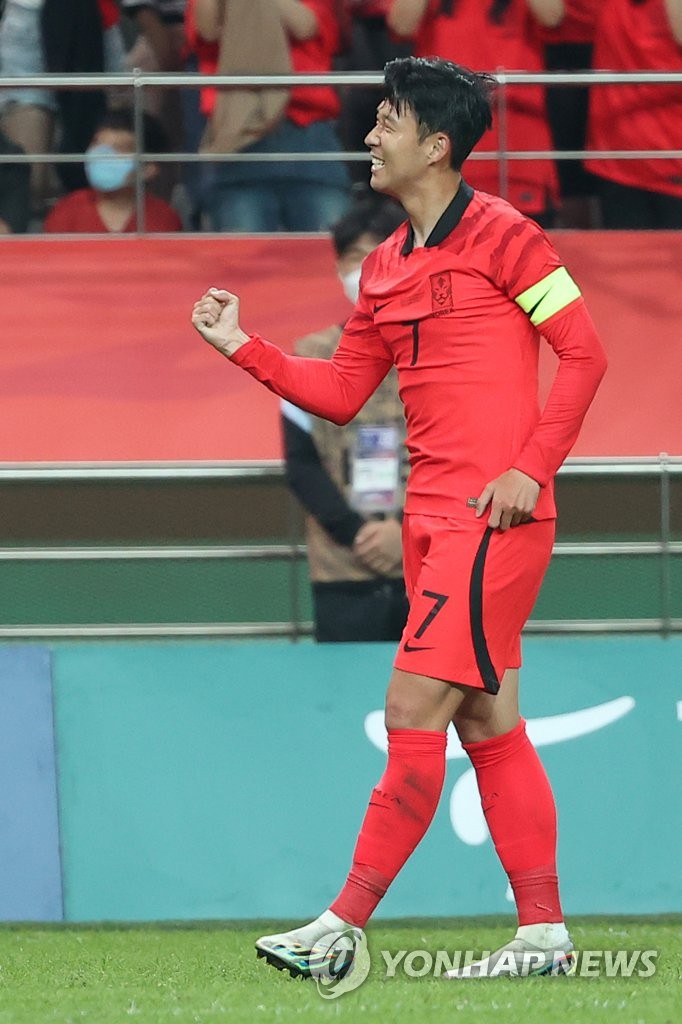| ▲ In this file photo from Sept. 27, 2022, Son Heung-min of South Korea celebrates his goal against Cameroon in the teams' men's football friendly match at Seoul World Cup Stadium in Seoul. (Yonhap) |