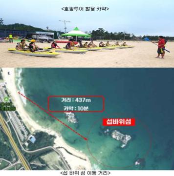 섭바위섬 호핑투어는 도 관광마케팅과의 지원을 받는 '강원투어패스 상품'(온라인관광패키지)을 활용, 고성 봉수대해변에서 카약을 타고 섭바위섬으로 이동한 뒤 스노클링 체험하는 관광상품으로 개발할 계획이다.