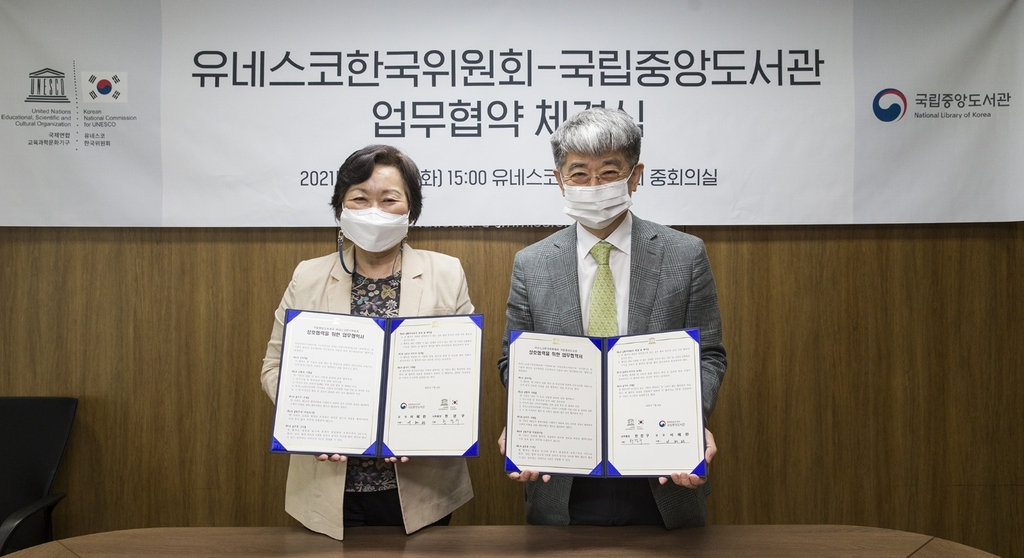(서울=연합뉴스) 박상현 기자 = ▲ 국립중앙도서관은 6일 유네스코 한국위원회와 상호 협력을 위한 업무협약을 했다.